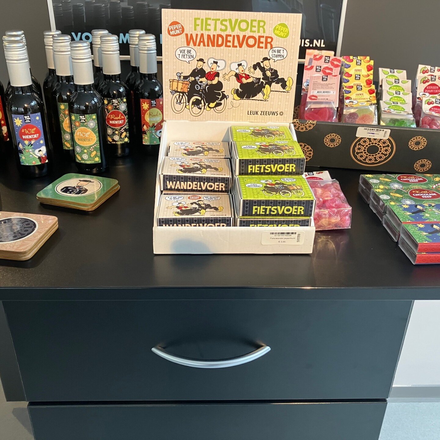 Nu te koop in museum Het Warenhuis, allerlei leuke dingen van chocolade, koekjes, snoepjes in vrolijke verpakking van Leuk Zeeuws.